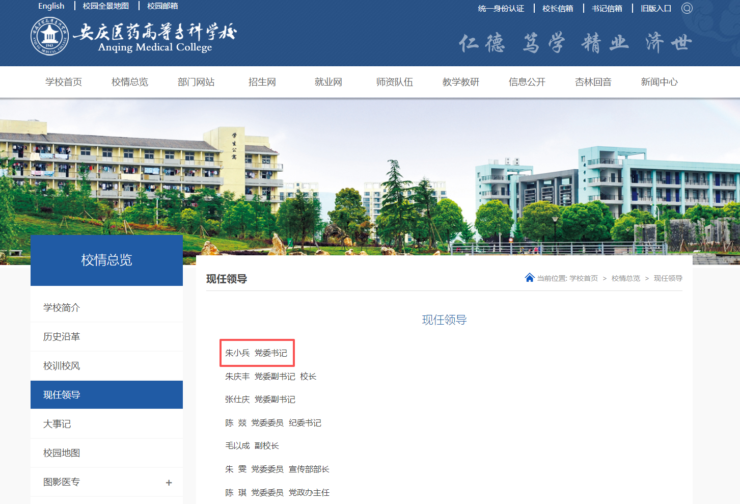 朱小兵已任安庆医药高等专科学校党委书记12月1日,安庆医药高等专科学校官网更新,朱小兵已任安庆医药高等专科学校党委书记。2024更新果,再修多久都是枉然。